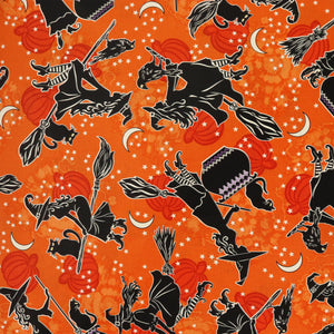 Alive with energy, Witchy Woman Orange features flying witches and black cats silhouetted against a fiery orange backdrop peppered with stars. This print radiates Halloween excitement and is ideal for bold decorative pillows, seasonal banners, or spirited clothing. Witchy Woman Orange adds dynamic movement and vivid color to any project, capturing the thrill of Halloween night.
