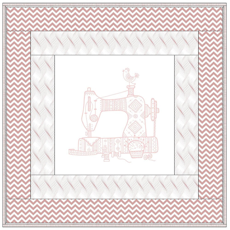 The Happy Sewing Wall Hanging includes everything that you need to make the quilt - the instructions and a total of 4 yards of fabric and a 23" panel. It has two borders and is finished with a flange binding. Batting is sold separately. The finished size of this quilt is 42" x 42".