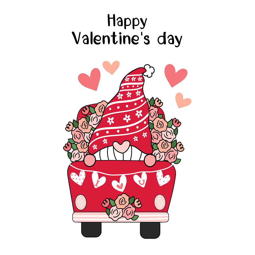 Happy Valentine's Day Gnome & Truck Fabric Panel