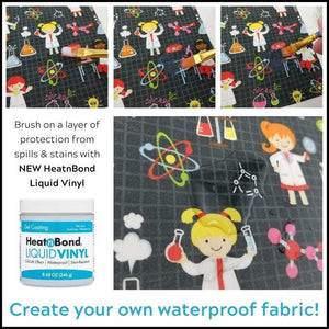 Heat N Bond's Liquid Vinyl Gel Coating opens up new creative possibilities and lets you create your own laminated fabrics. This gel coating enables you to turn your favorite materials stain-resistant, water-resistant, and even waterproof! Depending on how many coats you apply, you can achieve different effects, including a semi-gloss oilcloth look. Each jar of Liquid Vinyl is non-toxic, acid-free, phthalate-free, and contains 8.68 ounces (246g). Please note the brush pictured is not included.