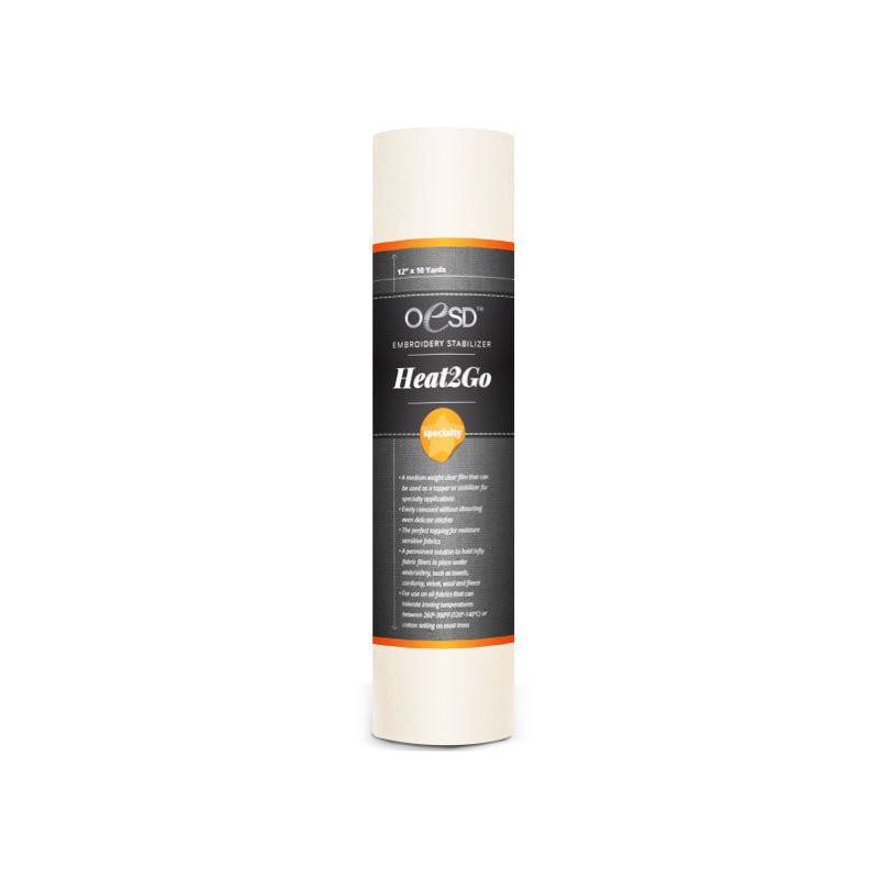 Heat2Go, from OESD, is an iron away topping/stabilizer ideal for use on delicate fabrics that can withstand iron temperatures between 260 °-300 °F (120 °-140 °C). A topping is used in combination with a stabilizer to prevent piled fabric from pushing through your embroidery design. Where a stabilizer is used on the bottom of your fabric, a topping is applied above your fabric. After embroidering, simply iron away the excess Heat2Go Topping. Ideal for us with corduroy, towels, fleece, and other piled materials. Each roll of Heat2Go contains 10 yards of 12-inch topping.