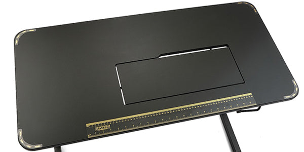 This table is meant to blend in perfectly with your Singer Featherweight 221 or 222. It features detailing along the edges, and the table comes in black to blend in with your machine. Printed directly on the table is a built-in measuring decal in both inches and centimeters.