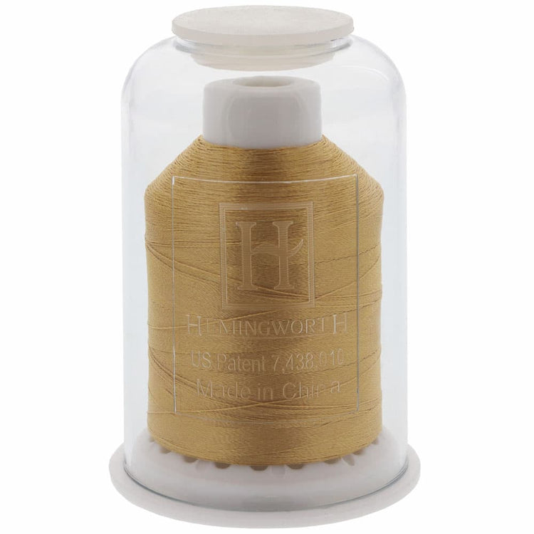 Hemingworth embroidery thread can be used in home and commercial embroidery machines, sewing and quilting machines, and sergers. It looks beautiful with your decorative stitches and is ideal for digitized embroidery designs due to the vibrant, colorfast, and consistent colors. Hemingworth is a very unique embroidery thread that's different than your traditional thread spools. It comes on a revolutionary spool and protective case that keeps your thread free from oil, UV rays, and dust.