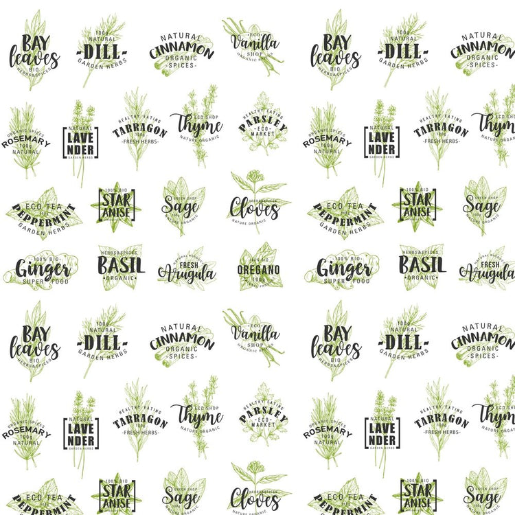 The Herbs & Spices Lettering Fabric is a part of the Food & Beverage Fabric Collection printed by Sewing Parts Online. Digitally Printed on 100% cotton and measures 44-45" wide.