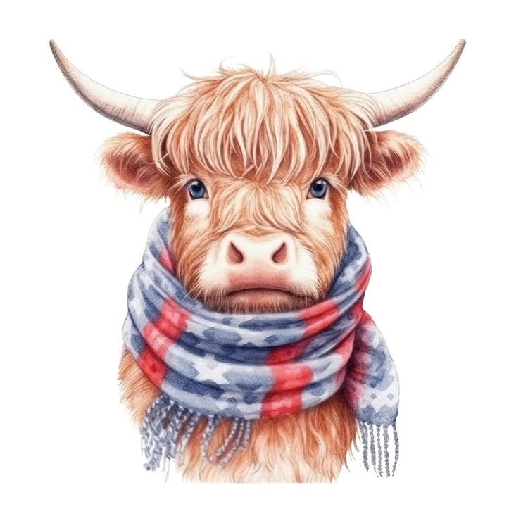Highland Cow In A Patriotic Scarf #4 Fabric Panel Details