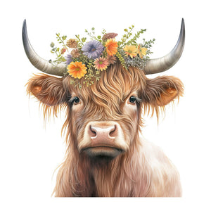 Highland Cow With Flower Crown #2 Fabric Panel Details