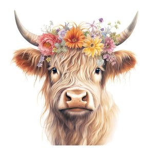 Highland Cow With Flower Crown #4 Fabric Panel Details
