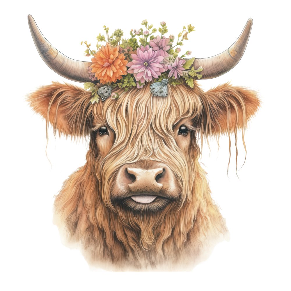 Highland Cow With Flower Crown #5 Fabric Panel Details