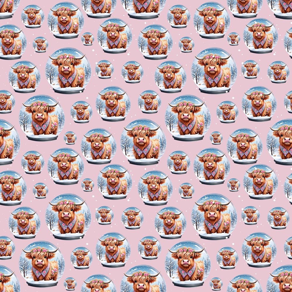 Highland Cows & Flowers In Globe Fabric - Pink Details