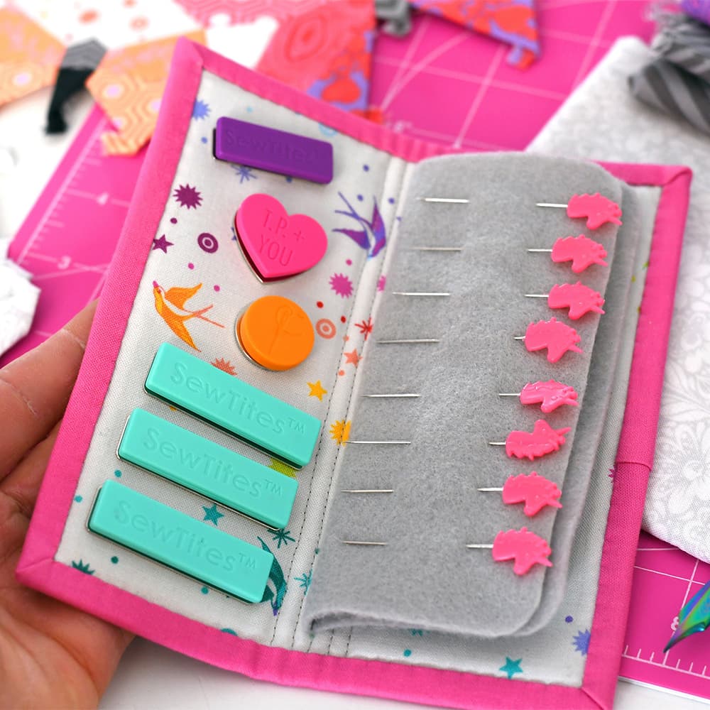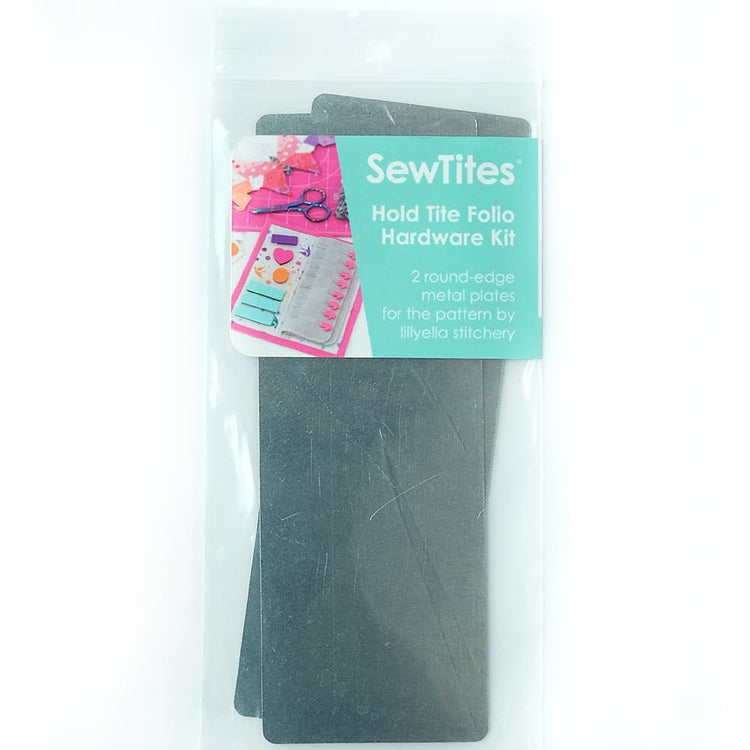 Keep your SewTites and pins secure with the Hold Tite Folio. This Hardware Kit includes two 2" x 5.625" pieces of 26-gauge galvanized sheet metal with rounded corners (to ensure the edges don't cut your fabric). Designed by Lillyella Stitchery, the Hold Tite Folio Pattern is available as a free digital download you can find here. This simple pattern is ideal for those with basic sewing, quilting, and binding knowledge. Please note the pins, SewTites, and other notions pictured are not included.
