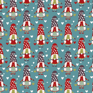 Holiday Gnomes, Hearts & Elf Fabric - Teal