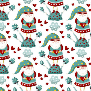 Holiday Gnomes, Hearts & Mushrooms Fabric - Teal