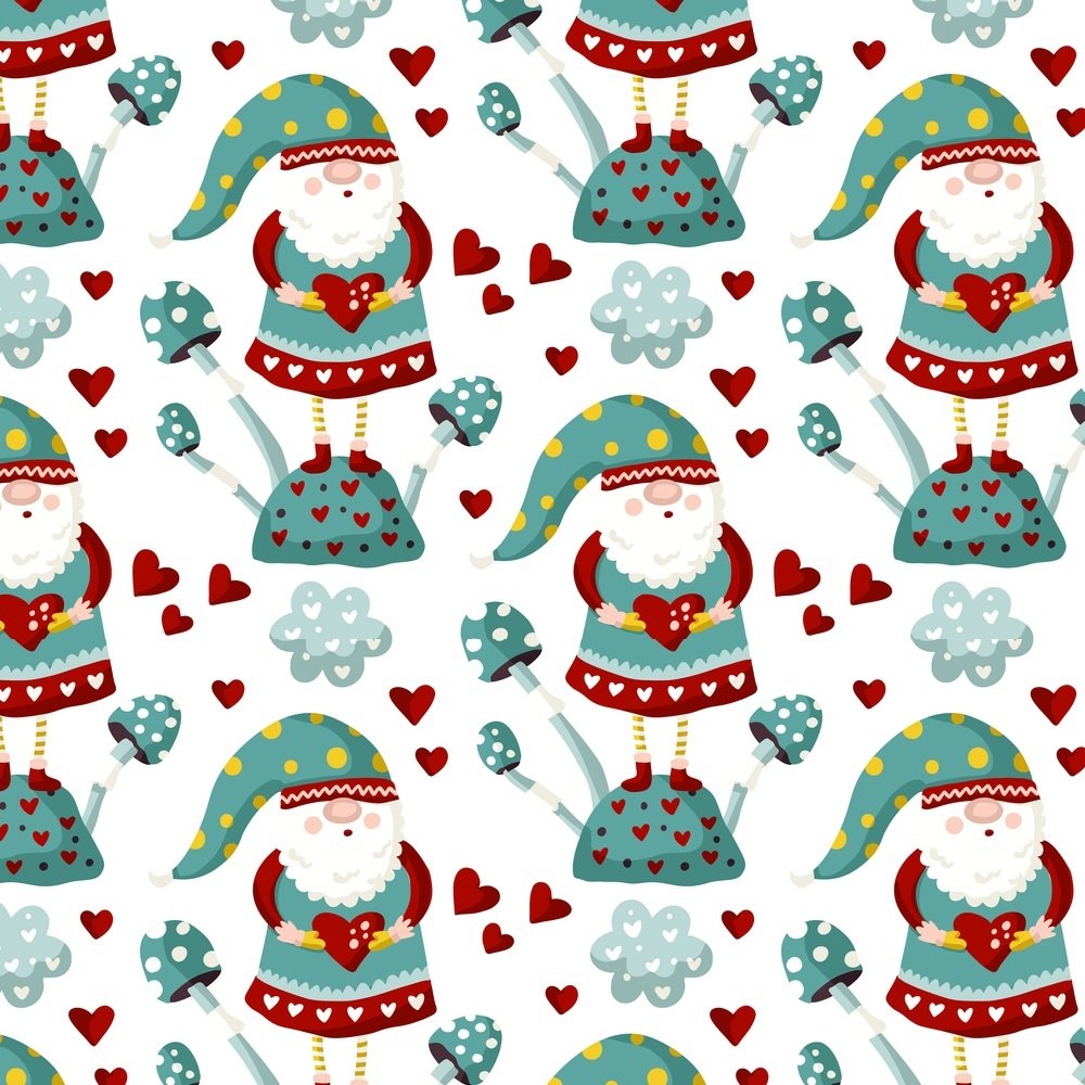 Holiday Gnomes, Hearts & Mushrooms Fabric - Teal Details