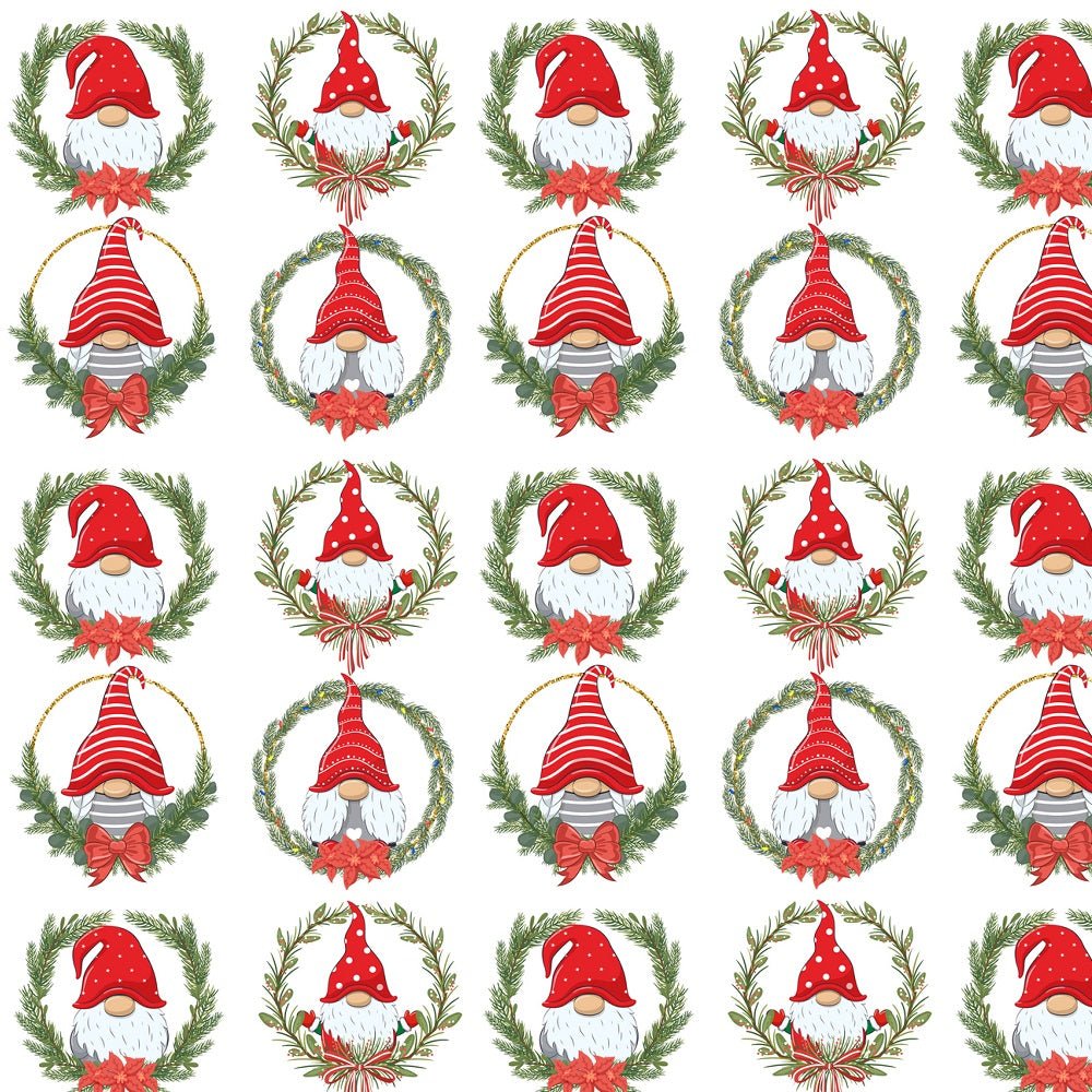 The Holiday Gnomes in Wreaths Allover Fabric is printed by Sew Creative Fabrics. Digitally Printed on 100% cotton.