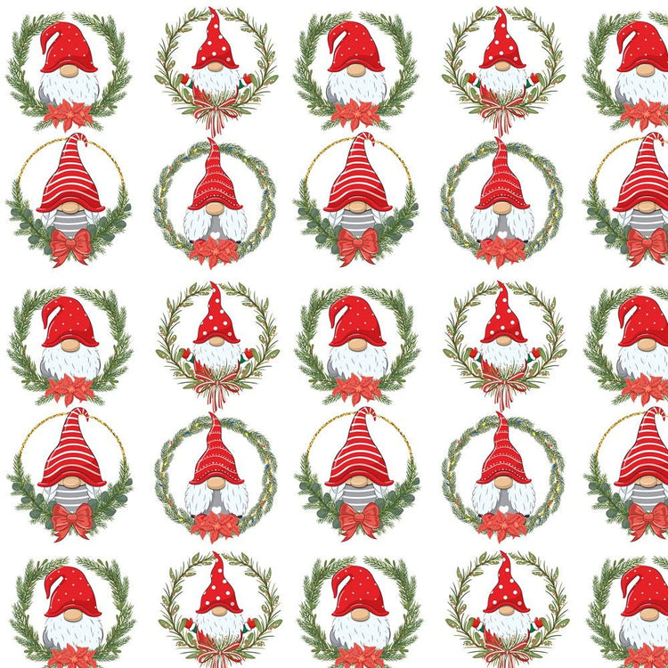 Holiday Gnomes in Wreaths Allover Fabric Details