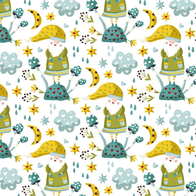 Holiday Gnomes, Moon & Raindrops Fabric - Yellow