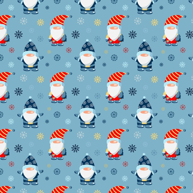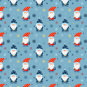 Holiday Gnomes, Snowflakes & Dwarfs Fabric - Blue