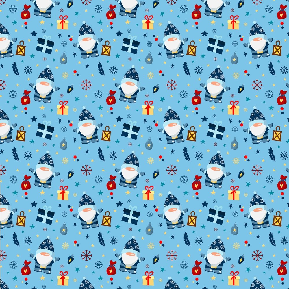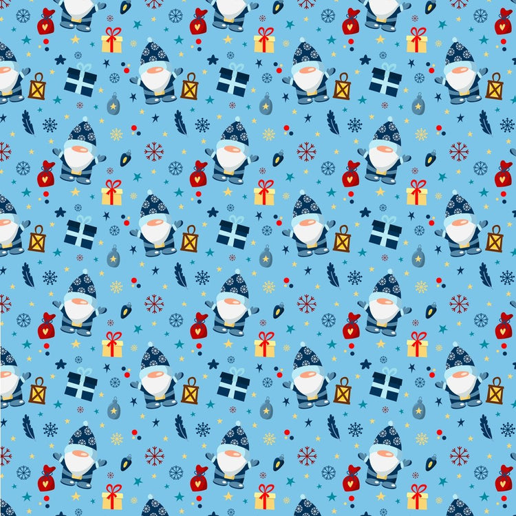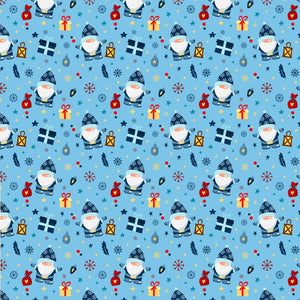 Holiday Gnomes, Snowflakes & Gifts Fabric - Blue