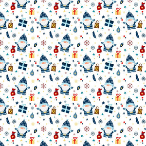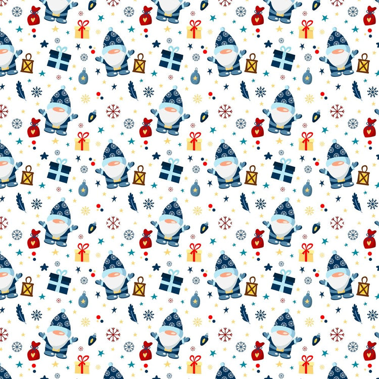 Holiday Gnomes, Snowflakes & Gifts Fabric - White