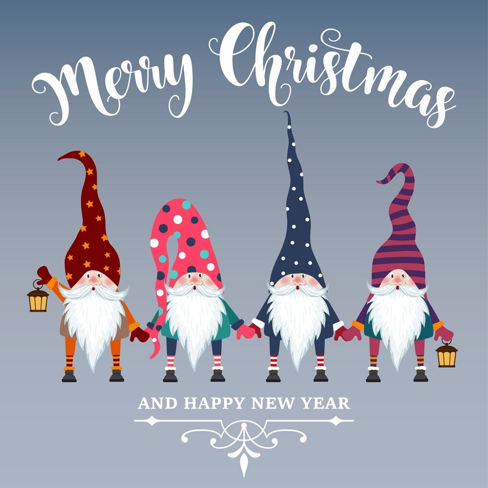 Holiday Wishes Gnome Fabric Panel - Blue Details