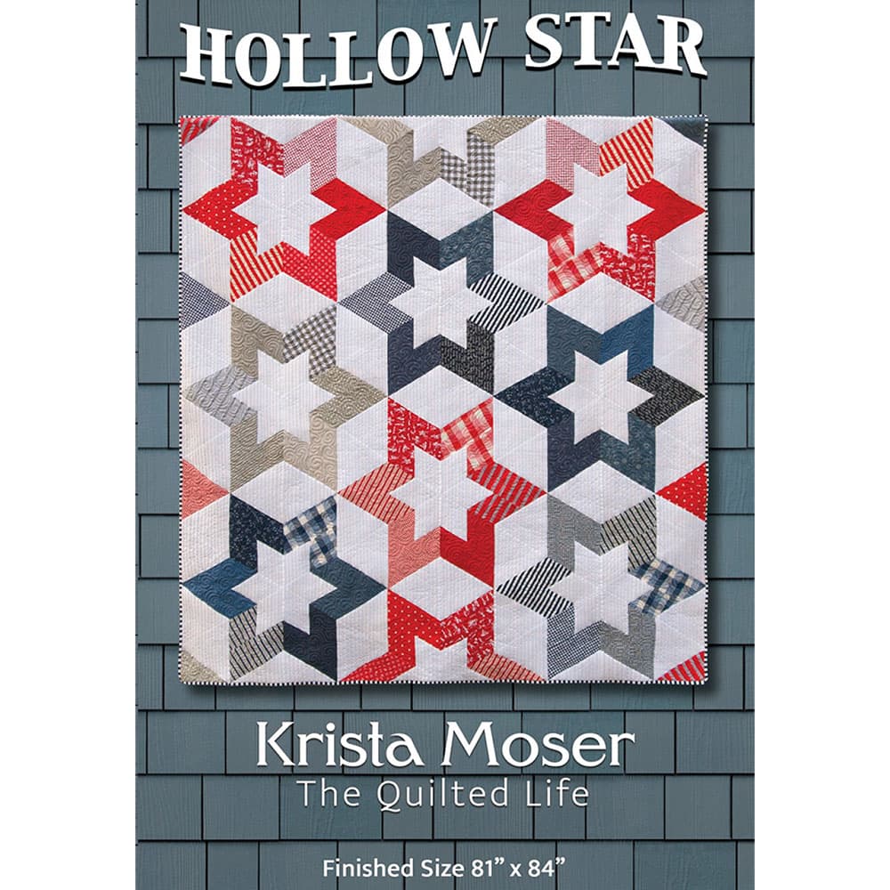 Hollow Star by Krista Moser is an astonishing modern take on a six-pointed star. This pattern includes step-by-step instructions with illustrations through every stage to make rotary cutting, piecing, and assembly a breeze. It's a terrific contemporary quilt for any modern decor. This pattern is easy enough for a beginner to intermediate quilter. Hollow Star is a great way to show off a favorite fabric collection from your stash. This quilt can be an excellent gift for your favorite guy with his favorite colors! This pattern creates a patriotic quilt with red, white, and blues, but you can use whatever colors you want for your desired look. Finished size: 81" x 84"