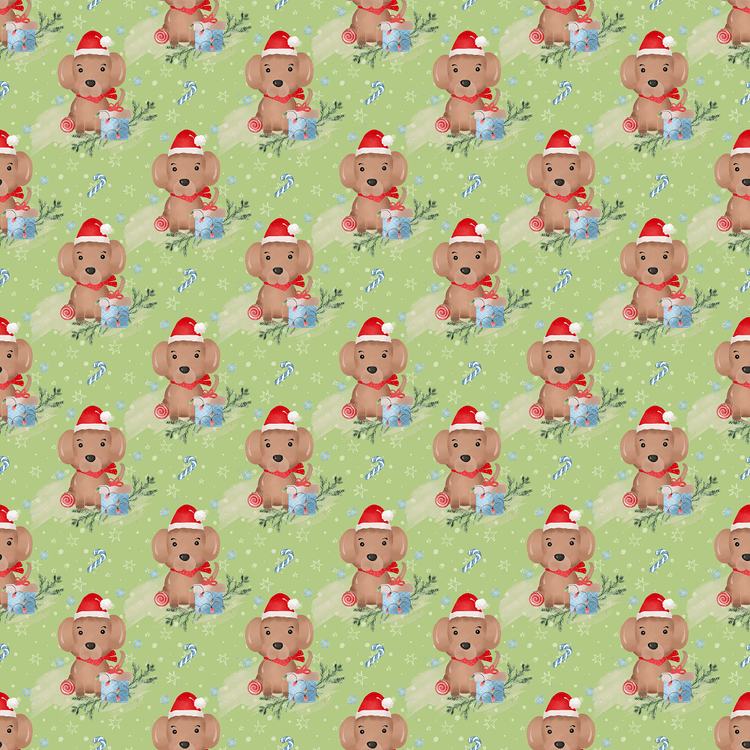 The Green Holly Jolly Puppy Fabric is part of the Holly Jolly Pets Fabric Collection printed by Sew Creative Fabrics. Digitally Printed on 100% cotton and measures 43-44" wide.