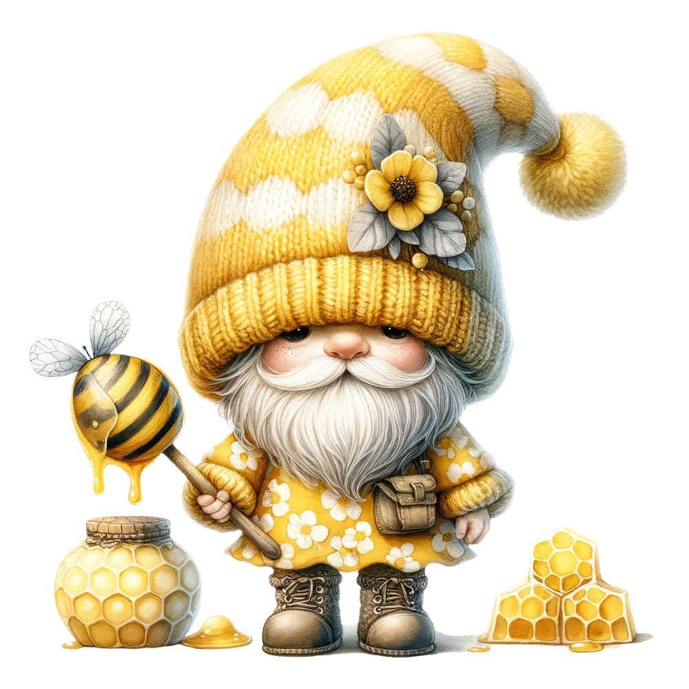 The Honey Bee Gnome 7 Fabric Panel is a part of the Honey Bee Gnomes Fabric Collection Digitally Printed on 100% cotton.