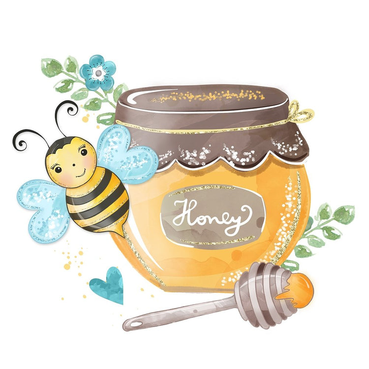 The Honey Jar & Bee Fabric Panel is part of the Honey Bee Fabric Collection printed by Sewing Parts Online. Digitally Printed on 100% cotton. This panel is available in 6 different sizes: