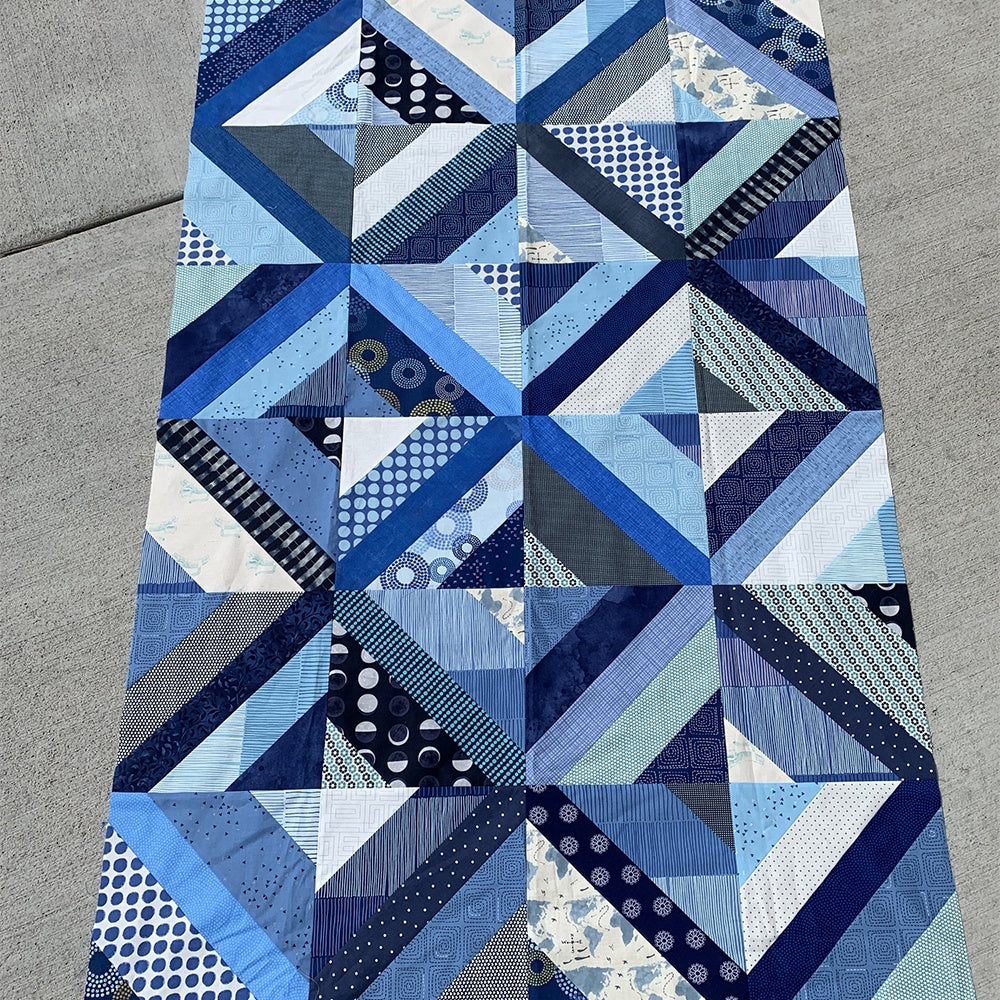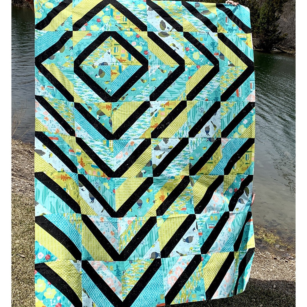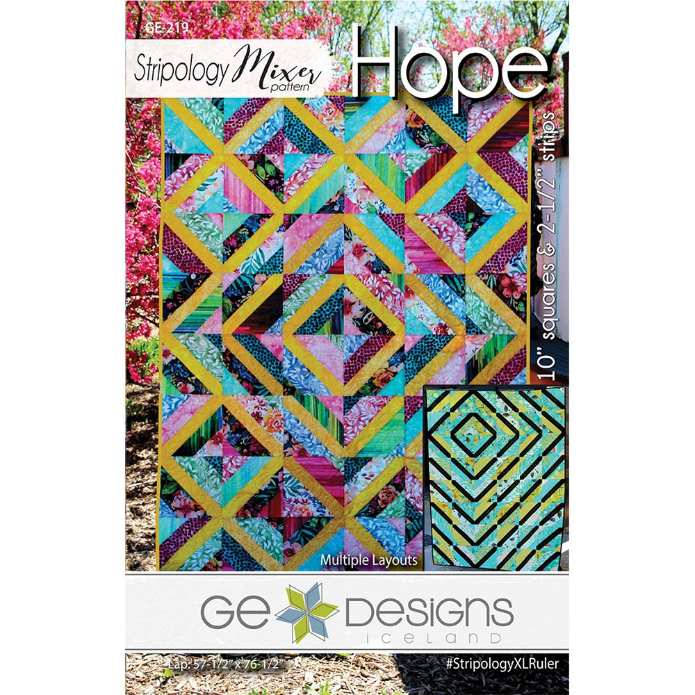 Gudrun Erla's Hope Quilt Pattern if fat quarter, scrap fabric, and 10" square friendly. This easy pattern uses Creative Grids Stripology XL Ruler (not included) to help facilitate the cutting process. The Hope Quilt pattern is suitable to all skill levels and can be made in four different sizes; crib (38-1/2"x57-1/2"), lap (57-1/2"x76-1/2"), full (76-1/2""x95-1/2"), or king-size (95-1/2"x95-1/2"). All the instructions you will need plus a list of suggested materials are included with the Hope Quilt Pattern.