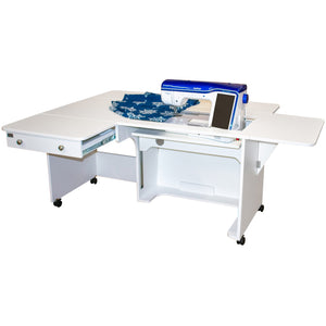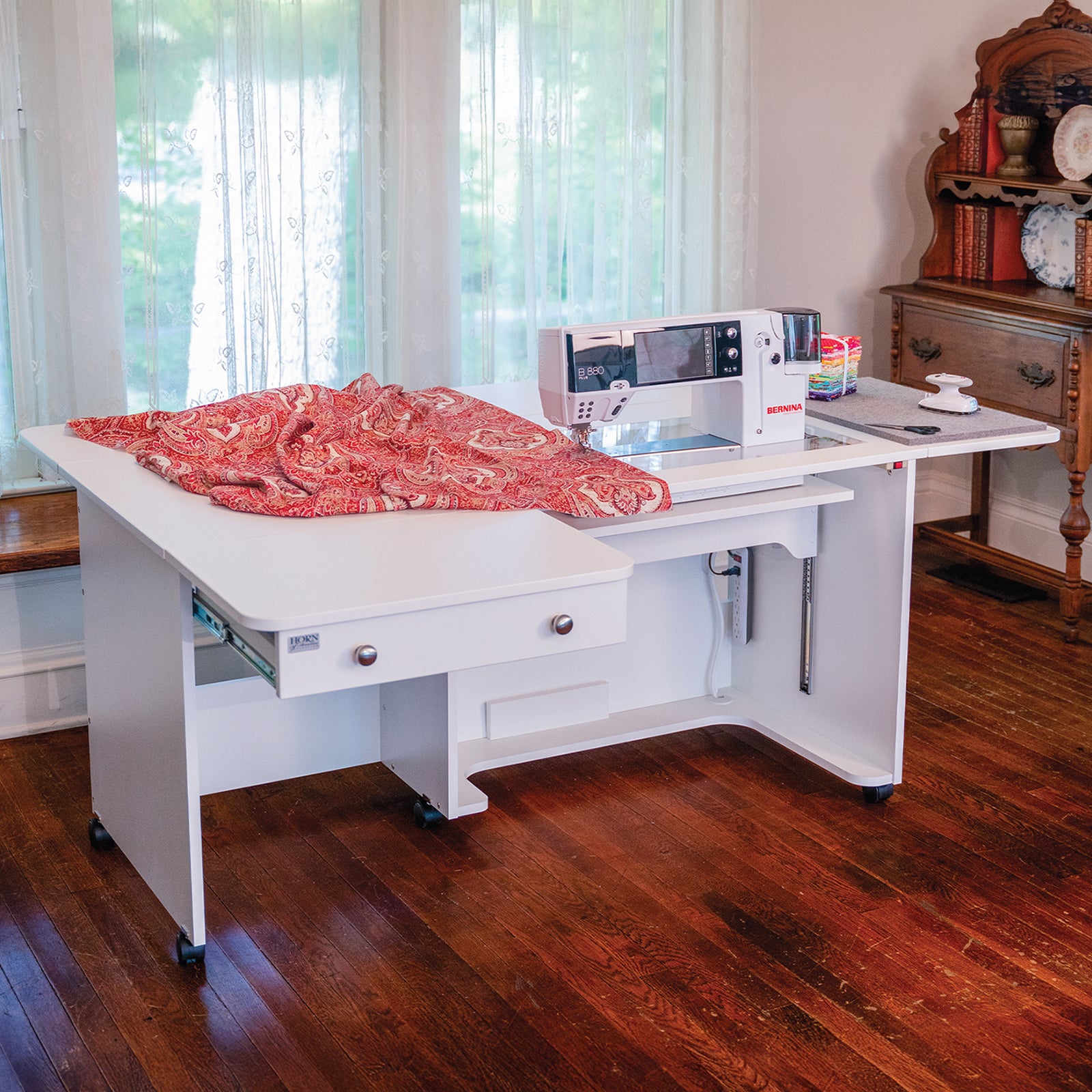 The Horn of America Model 8280 Quilter’s Dream XL is built for sewists and quilters who need maximum space, smart storage, and a sturdy design to keep up with today’s largest machines. Featuring a 31" x 15-1/2" cut-out, it easily accommodates oversized quilting and embroidery models, giving you the room you need to take on ambitious projects with confidence. Whether you’re piecing a quilt, free-motion quilting, or tackling home décor, the 8280 provides a stable, comfortable, and efficient setup designed to make every stitch easier. Style meets functionality with two sleek finish options. Choose White for a crisp, bright look that makes your sewing room feel more open, or select Gray for a modern, contemporary style that blends effortlessly with any décor. Both finishes are durable and timeless, ensuring your cabinet looks as good as it performs for years to come.