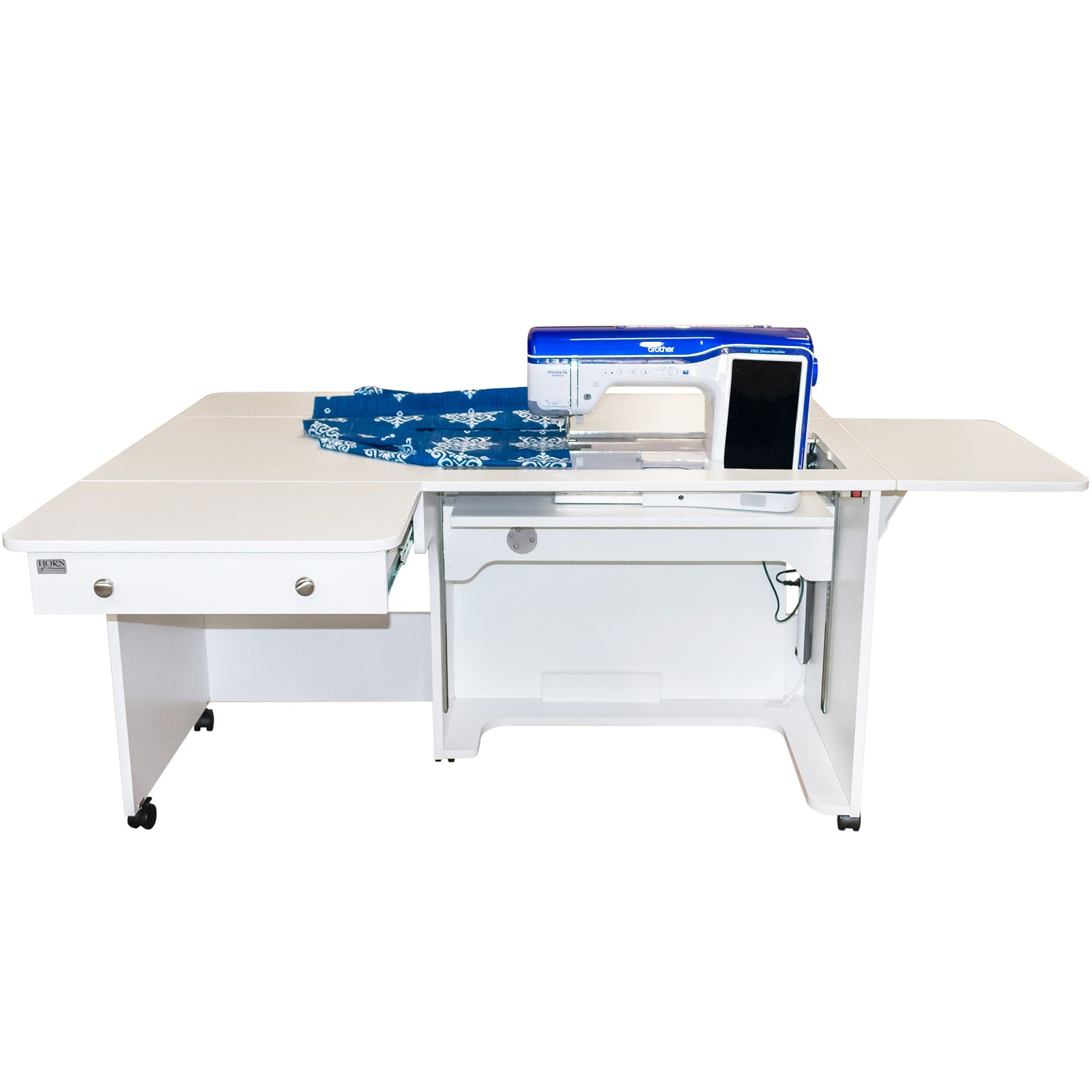 Big machines are no challenge thanks to the generous 31" wide by 15-1/2" deep cut-out, built to fit today’s largest and most advanced models like the Baby Lock Radiance, Brother Aveneer EV1, Bernina 990, and Janome M17. This oversized opening keeps your machine secure and flush with the cabinet surface, ensuring smoother fabric flow and better stability for high-speed stitching.