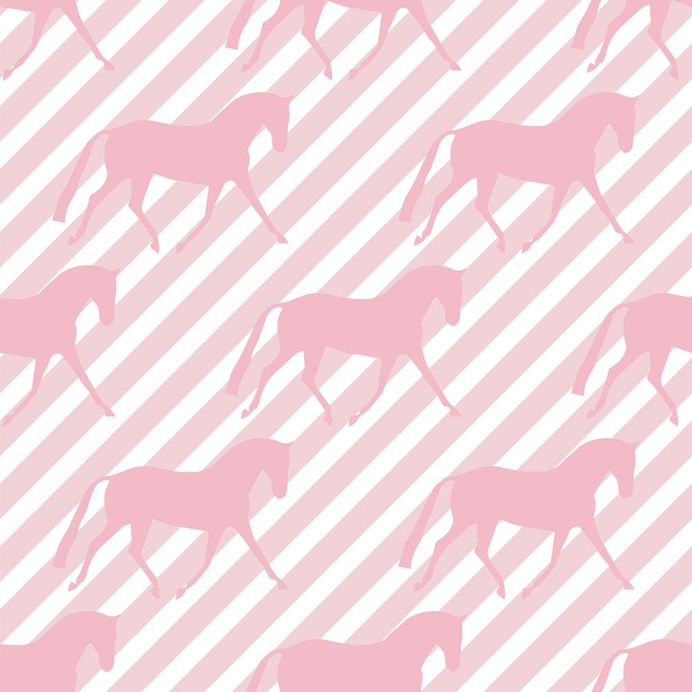 Horse Silhouettes on Diagonal Stripes Fabric - Pink