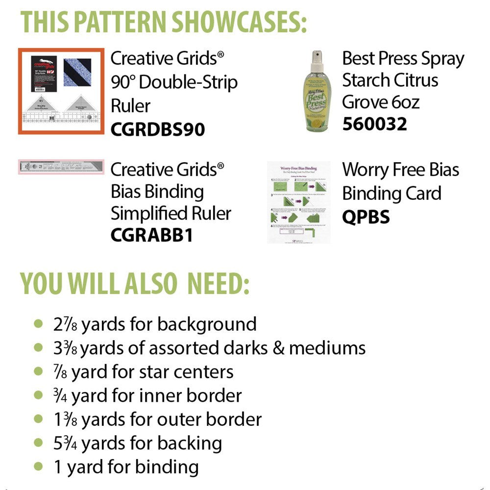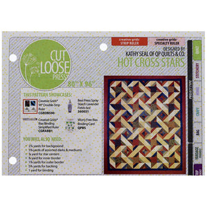 The Hot Cross Stars Quilt Pattern, from Cut Loose Press, features a gorgeous pinwheel pattern! The completed quilt measures 80 inches by 96 inches, ideal for a full-size bed, lap quilt, or throw. The Hot Cross Stars Quilt Pattern requires the use of the Creative Grids 90-degree Double-Strip Ruler (CGRDBS90) and Bias Binding Simplified Ruler (CGRABB1).