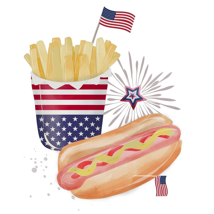 The Hotdog & Fries Fabric Panel is part of the Celebrate Freedom Fabric Collection printed by Sewing Parts Online. Digitally Printed on 100% cotton. This panel is available in 6 different sizes:
