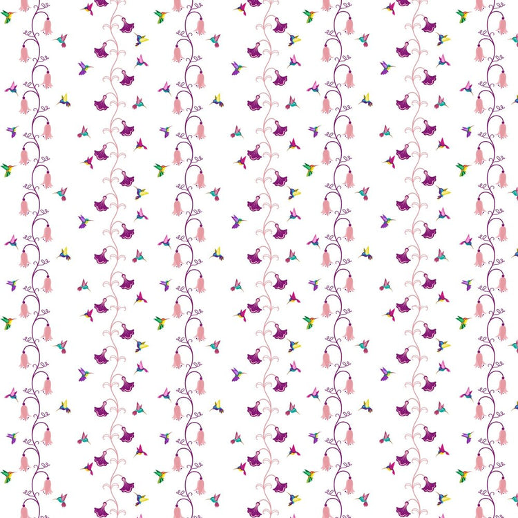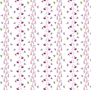 The Pink and Purple Hummingbird Vine Fabric is part of the Animal Fabric Collection printed by Sewing Parts Online. Digitally Printed on 100% cotton.
