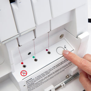 The S500 revolutionizes threading with its one-touch electronic air-threading system, making setup fast, effortless, and frustration-free. With just the press of a button, air power pushes the thread through the loopers, eliminating the need for manual threading and making complex threading paths a thing of the past. This innovative feature not only saves time but also ensures consistent threading, letting you get started on your projects in seconds.