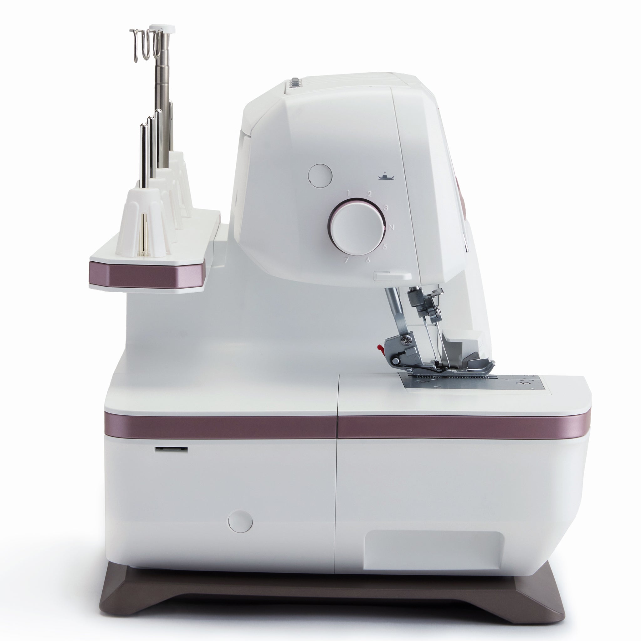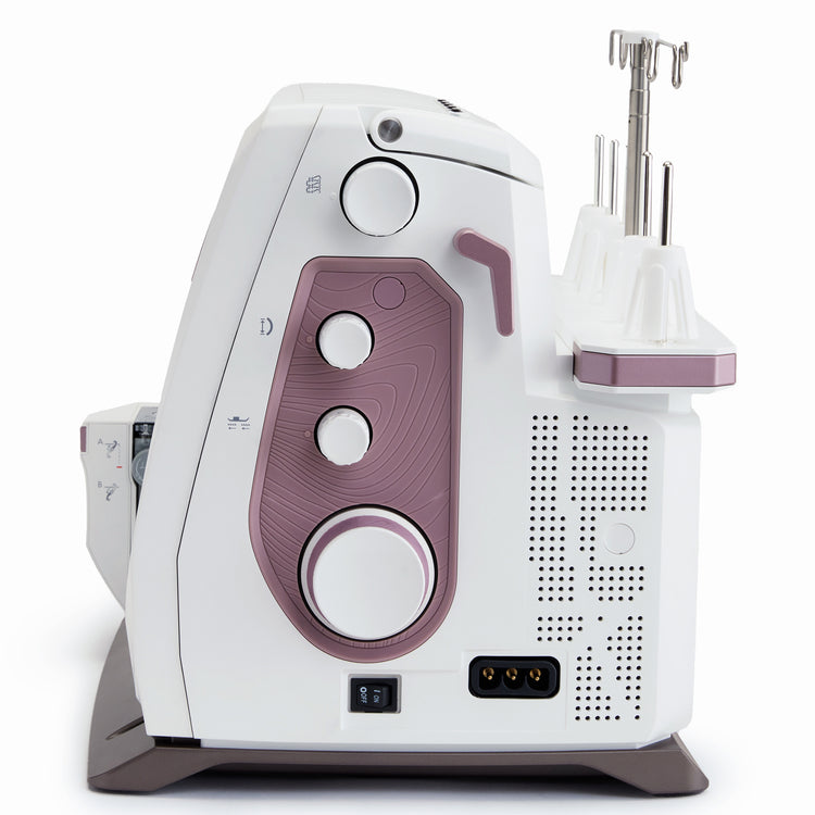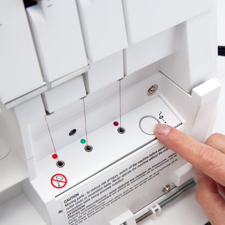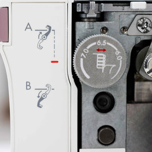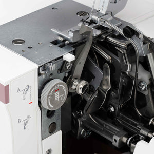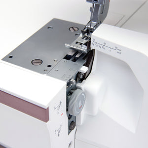 The Amber Air offers Precise Thread Control, allowing you to fine-tune the overedge threads for perfect stitch formation along fabric edges. If the loops do not form neatly around the fabric edge and you have tried to adjust the tension and/or cutting width, the Precise Thread Control will allow tiny movements of the stitch finger to compensate. With the ability to adjust thread control so precisely, you can avoid issues like loose threads, puckering, or uneven stitches, resulting in clean, durable seams and beautifully finished edges on every project.