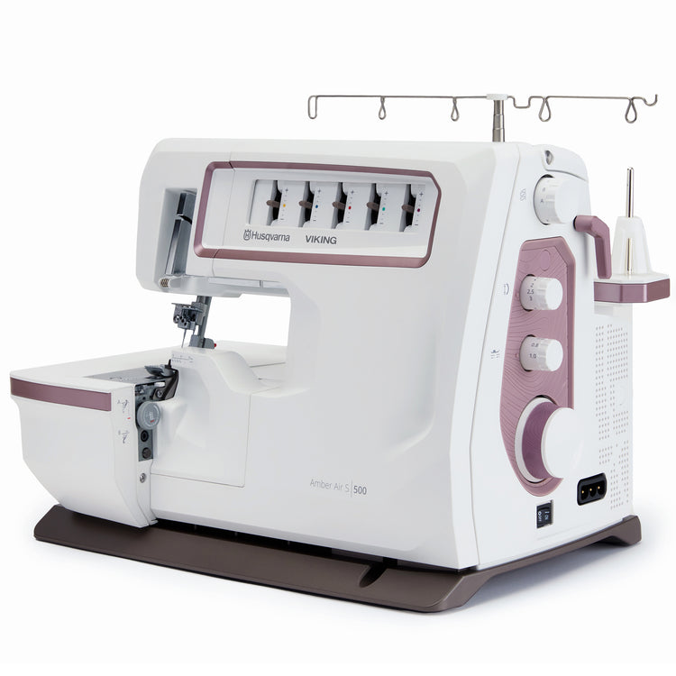 The Husqvarna Viking Amber Air S500 Serger & Coverstitch Combo machine brings unmatched versatility and professional-grade finishing to your sewing space, offering the power of a serger and coverstitch in one compact, efficient machine. Perfect for creating strong, stretchy seams and beautifully finished edges, the S500 Combo is designed to handle everything from delicate knits to heavy fabrics with ease. With features like easy threading, adjustable stitch settings, 23 stitches, 5/4/3/2 thread capability, an extension table, and a high-speed motor, this machine allows sewists of all levels to produce clean, durable seams and decorative finishes quickly and effortlessly. Whether you're crafting garments, home décor, or accessories, the S500 Serger & Coverstitch Combo elevates your projects with a flawless, polished look.