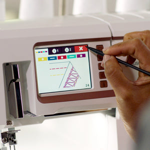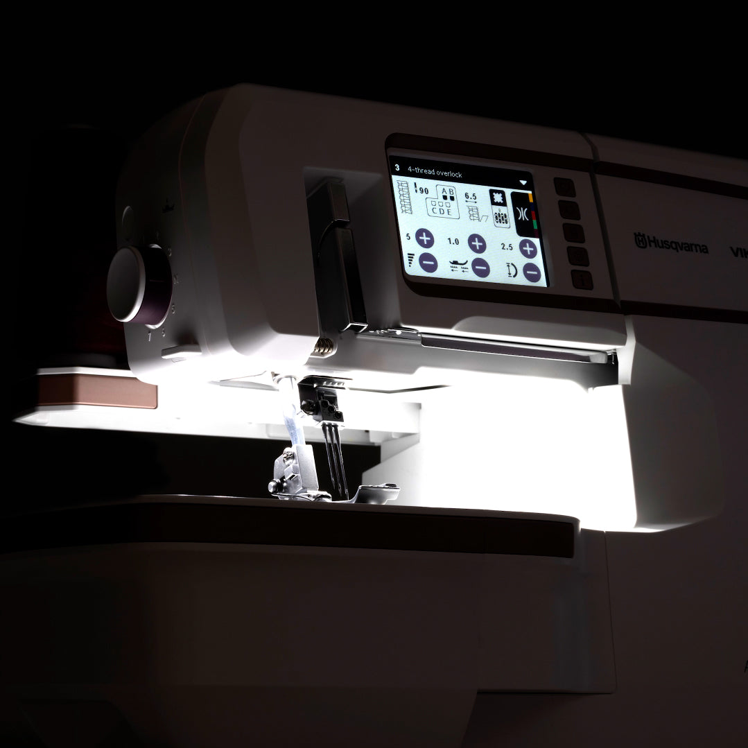 The HUSQVARNA® VIKING® AMBER™ Air S | 600 features a bright LCD touchscreen that brings intuitive control right to your fingertips. This easy-to-navigate display lets you adjust stitch length, width, and tension with a simple tap, ensuring precise settings for every fabric type. Additionally, it provides helpful on-screen guidance and stitch recommendations, making setup effortless and enhancing your confidence with each stitch. This modern interface makes it easy to personalize settings, giving you full control over your sewing experience.