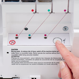 The S600 revolutionizes threading with its one-touch electronic air-threading system, making setup fast, effortless, and frustration-free. With just the press of a button, air power pushes the thread through the loopers, eliminating the need for manual threading and making complex threading paths a thing of the past. This innovative feature not only saves time but also ensures consistent threading, letting you get started on your projects in seconds.