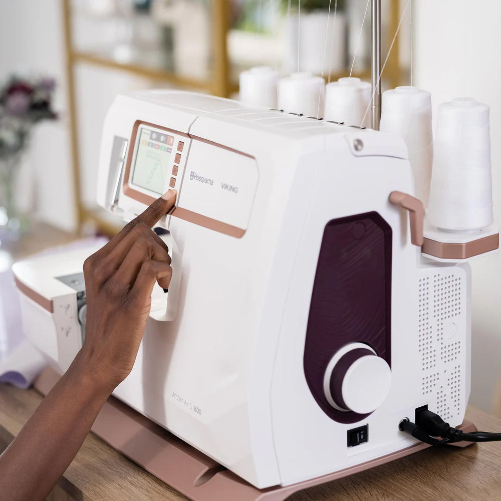 The Husqvarna Viking Amber Air S | 600 is designed for sewing enthusiasts who want precision and ease of use in an overlock machine. This model features a one-touch air threading system, making it incredibly simple to thread the machine in seconds—no more struggling with intricate threading paths. With an advanced, user-friendly interface and fine-tunable stitch options, it's built to handle a wide variety of fabrics, from delicate chiffons to sturdy denim, ensuring professional, consistent results every time.