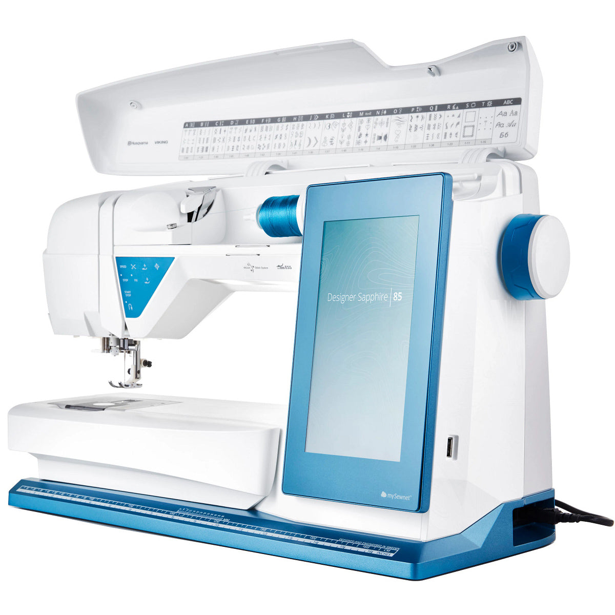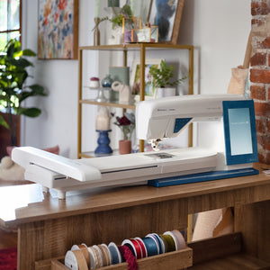 At the heart of the Designer Sapphire 85 is its impressive 8" full-color touch screen, offering a clear and intuitive user interface that makes navigating through its extensive menu of options a breeze. The machine's mySewnet™ connectivity takes creativity to the next level by offering cloud-based design management. The mySewnet™ Library also provides access to thousands of high-quality designs, constantly updated, so you always have fresh inspiration. In terms of stitch variety, the Sapphire 85 shines with an astounding 680 built-in stitches, ranging from utility stitches for everyday sewing to intricate decorative stitches, 12 one-step buttonholes, over 620 designs, and accommodates designs up to 360mm x 350mm, perfect for larger projects.