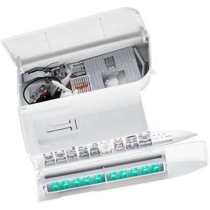 The Designer Sapphire 85 features advanced Dual Feed Technology, ensuring smooth and even fabric feeding from both the top and bottom, making it ideal for working with challenging fabrics like velvet, leather, and multiple layers. The machine also includes a convenient top-load bobbin system with a Top and Bobbin Thread Sensor that alerts you when the thread is running low or breaks, allowing you to sew with confidence and avoid interruptions during your projects.