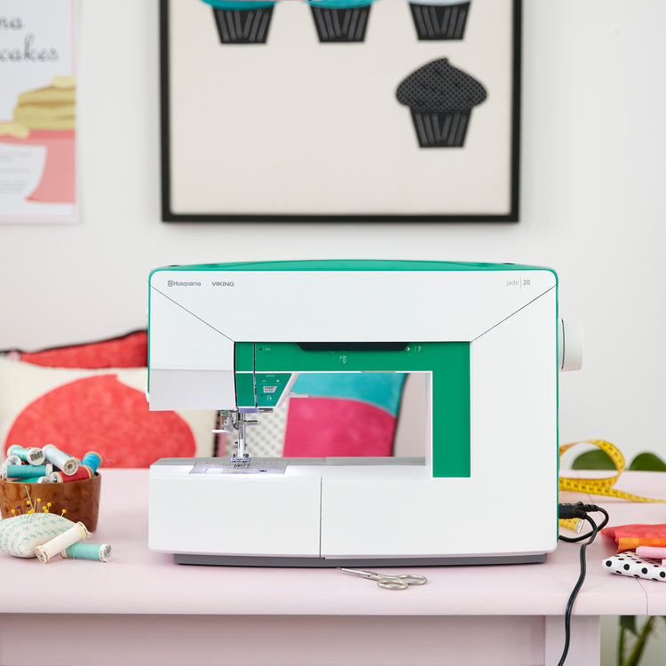 The Jade 20 offers a generous 8-inch workspace, giving you plenty of room to tackle larger projects such as quilts and home decor items. Thoughtful features like an intuitive needle threader, a bright LED lighting system, and a sleek, modern design make sewing a delightful experience. Compact yet powerful, this machine is ideal for those who want professional results without sacrificing style or space. Let your creativity shine with the Husqvarna Viking Jade 20, where every stitch is a masterpiece waiting to happen.