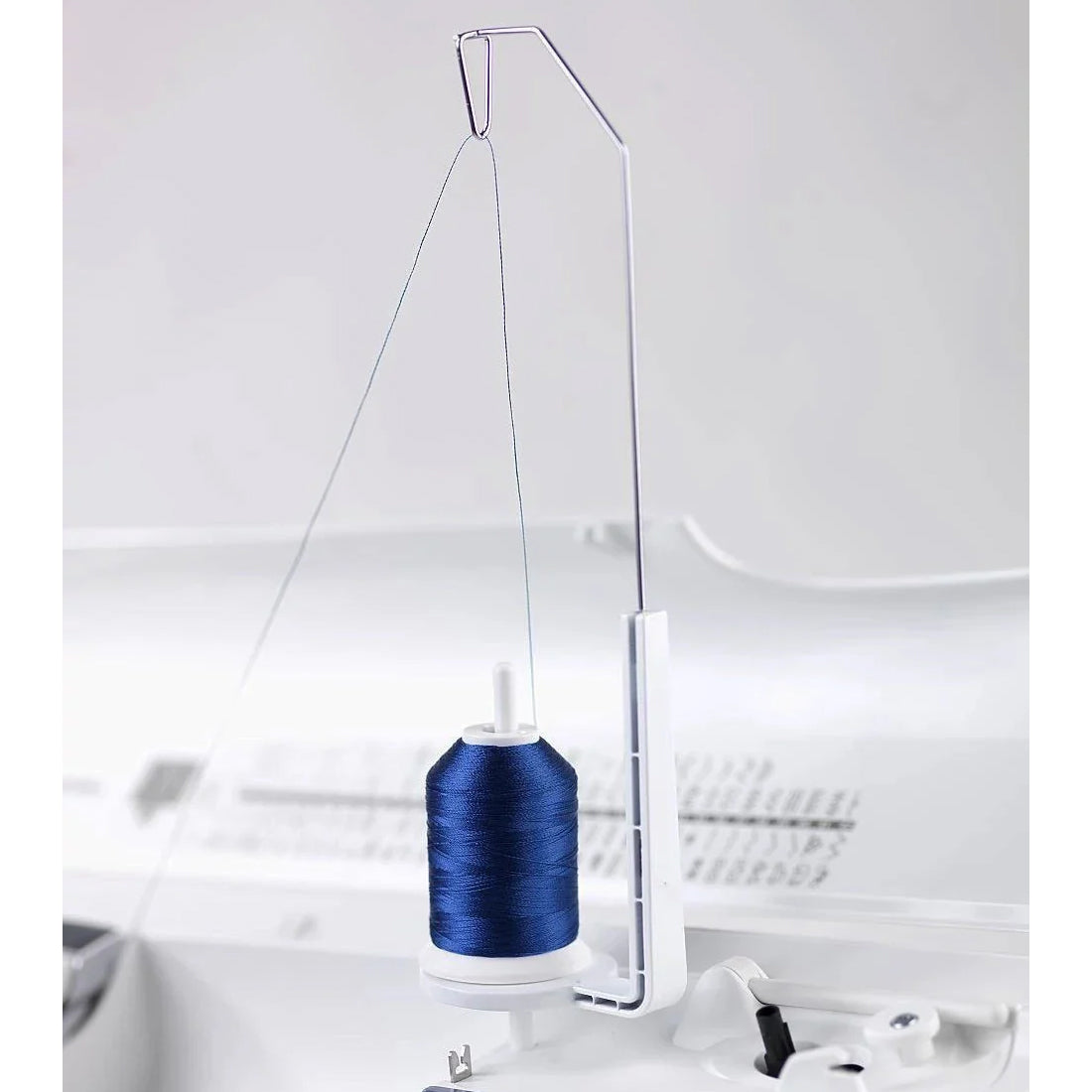 The Mega Spool Stand is designed to simplify the use of large spools of decorative thread. This accessory mounts on top of the sewing machine and includes a sturdy thread stand, a thread guide, and a thread net to ensure smooth and even thread delivery. Perfect for handling specialty threads, the Mega Spool Stand helps prevent tangling and improves stitch quality for all your sewing and embroidery projects.