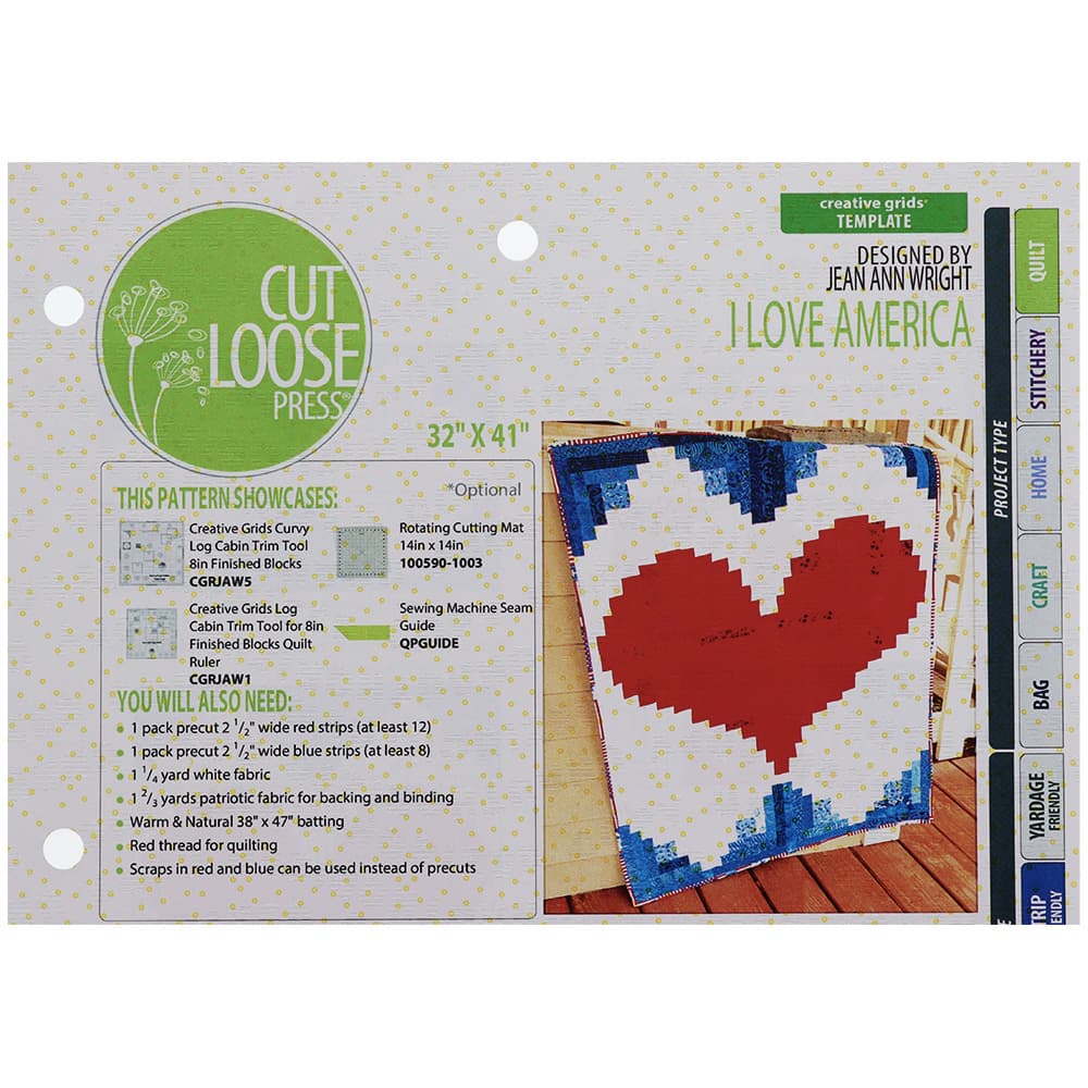 Show everyone your patriotic side with this I Love America Wall Hanging Pattern from Cut Loose Press and Jean Ann Wright. Use fabric strips and the Creative Grids 8" Curvy Log Cabin Trim Tool with the