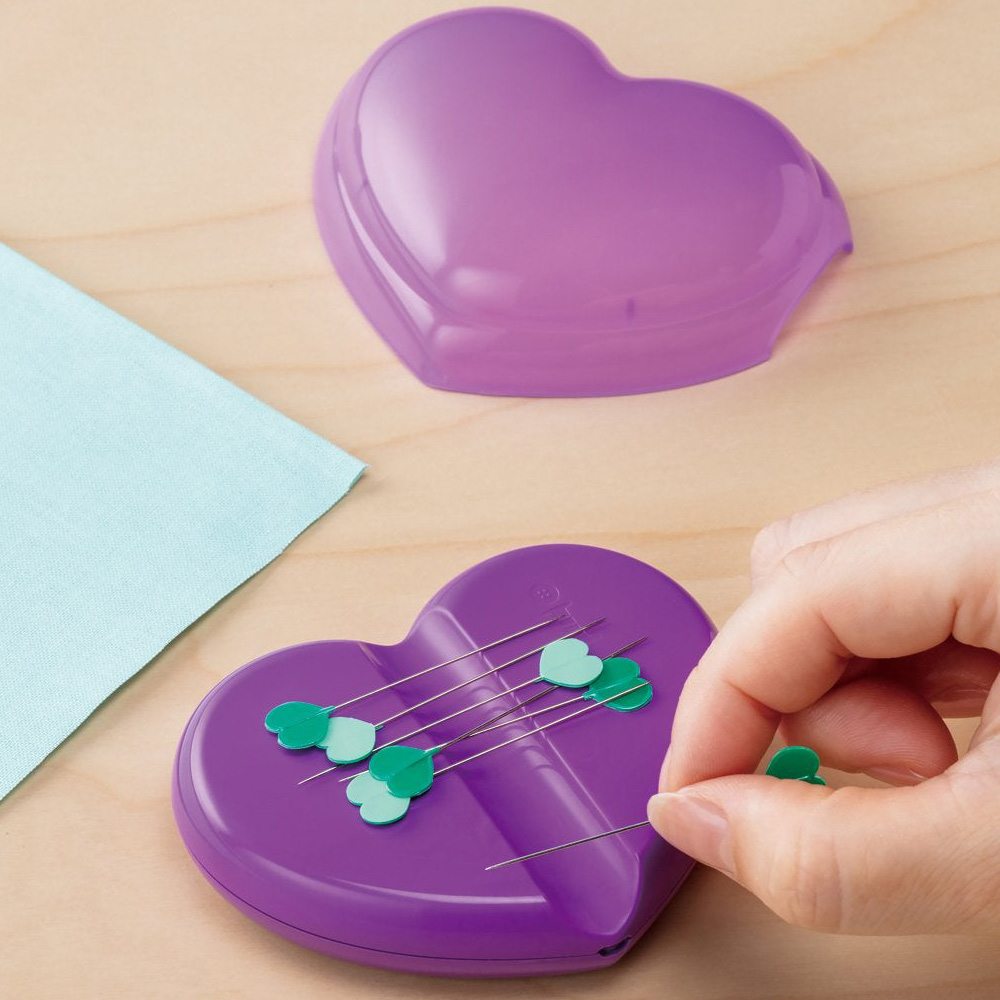 The Clover Heart-Shaped Pins are convenient for machine stitching and ironing. The heart-shaped head makes them easy to grab, and the sharp finish makes them effortless to use. Size: 0.55mm x 50mm.