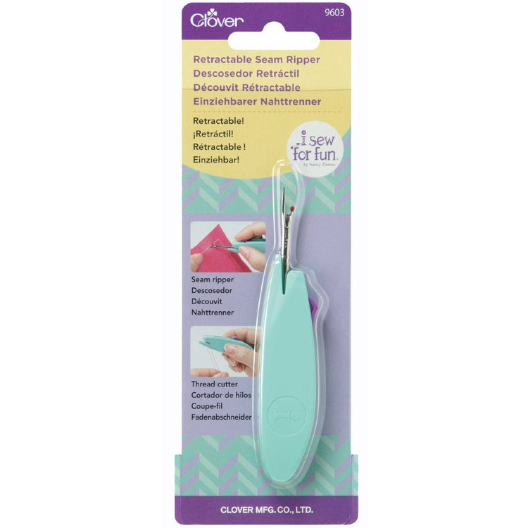 The Clover I Sew For Fun Retractable Seam Ripper features a retractable safety characteristic that enables this tool to be used both as a seam ripper when open and a thread cutter when closed.