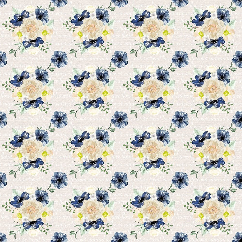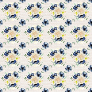 The Tan Indigo Blue Floral Bouquets on Text Fabric is part of the Indigo Blue Fabric Collection printed by Sew Creative Fabrics. Digitally Printed on 100% cotton.