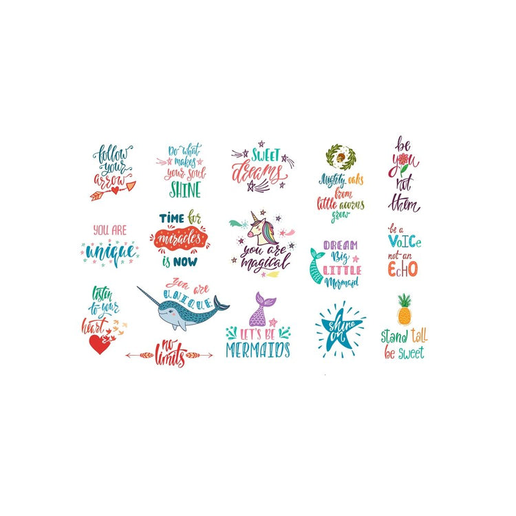 The Inspirational Magical Theme Quotes Fabric Panel is part of the Inspirational Panels Fabric Collection printed by Sewing Parts Online. This panel is digitally printed on 100% cotton. The Magical Quotes Fabric Panel is available in 6 different sizes: